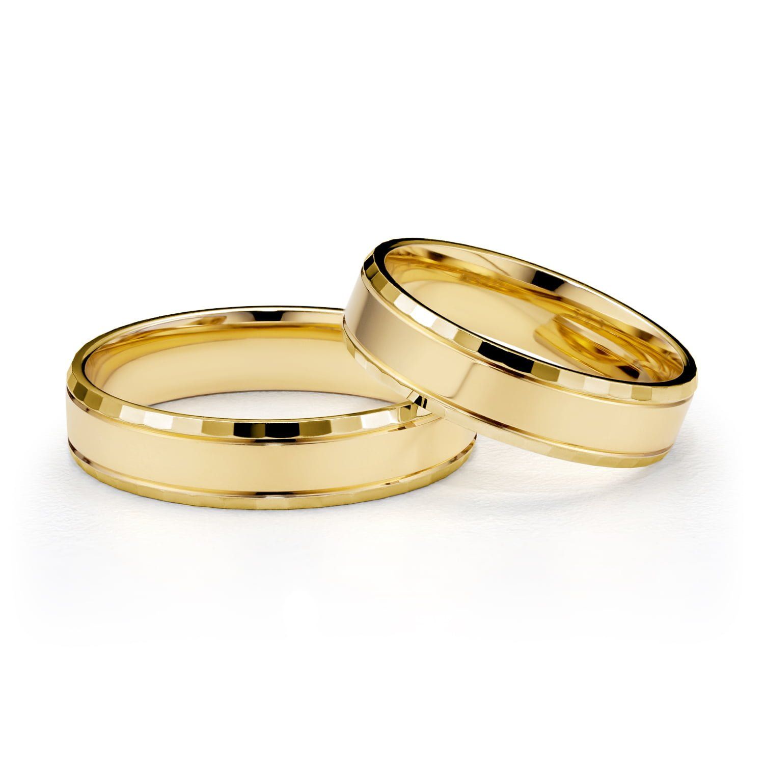 Fazowane jednokolorowe obrączki ślubne z diamentowaną fazą to eleganckie i modne rozwiązanie. Dostępne w różnych odcieniach złota.