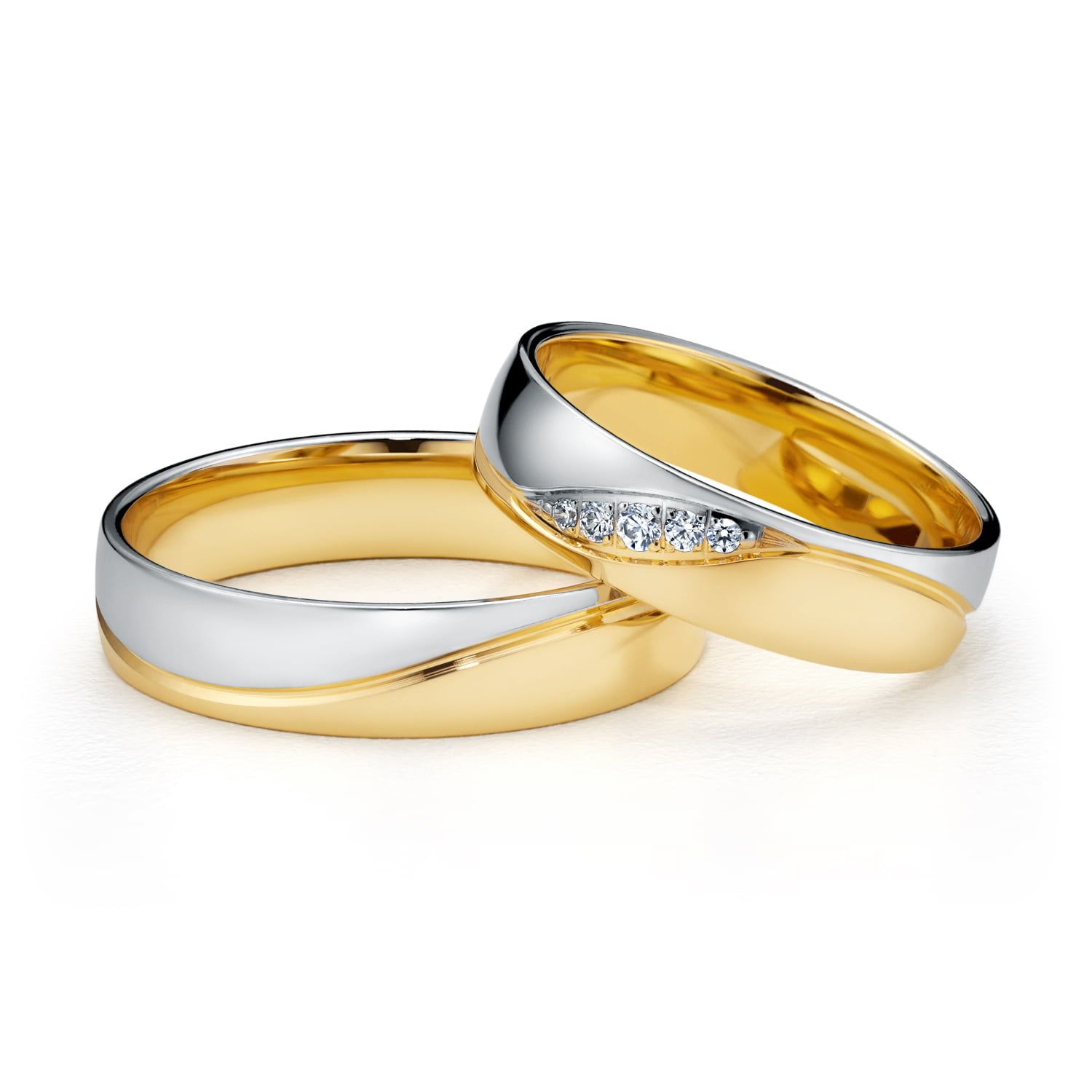 Jednokolorowe obrączki zdobione, fala dodaje im dynamiki i niepowtarzalności. Obrączki łączą w sobie piękno złota oraz połysk diamentów lub cyrkonii.