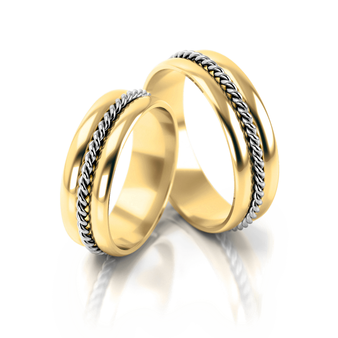 Półokrągłe dwukolorowe obrączki z ozdobnym warkoczem to wyraz ponadczasowej klasyki i nowoczesnego wzornictwa. Warkocz umieszczony w centralnej części tworzy ciekawy i niezwykle stylowy kontrast.