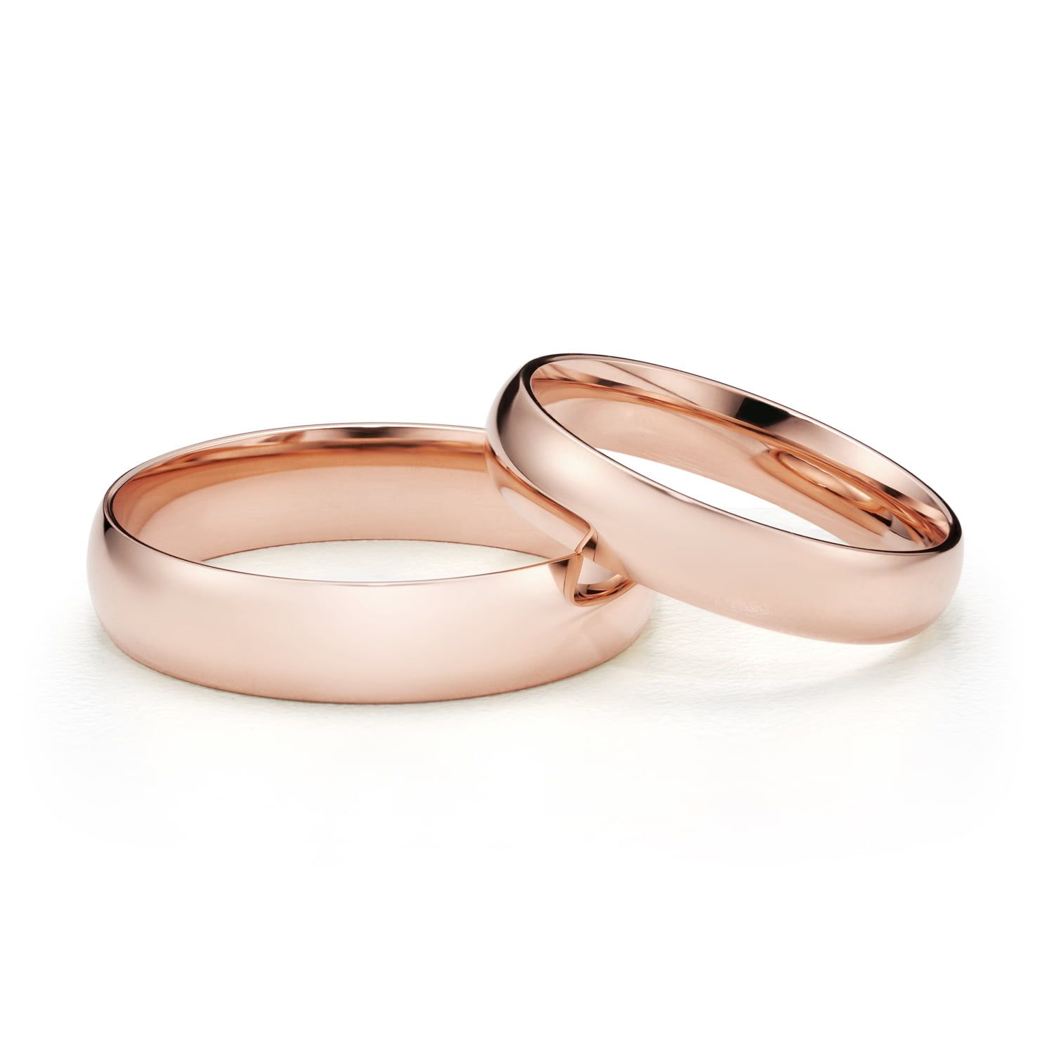 Te półokrągłe obrączki ślubne wykonane z różowego złota posiadają klasyczny, elegancki styl i mocno zaokrąglony profil, co dodaje im niepowtarzalnego uroku.