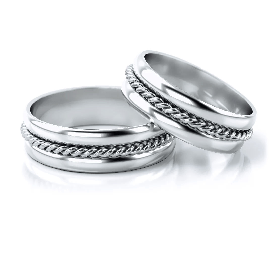 Półokrągłe dwukolorowe obrączki z ozdobnym warkoczem to wyraz ponadczasowej klasyki i nowoczesnego wzornictwa. Warkocz umieszczony w centralnej części tworzy ciekawy i niezwykle stylowy kontrast.