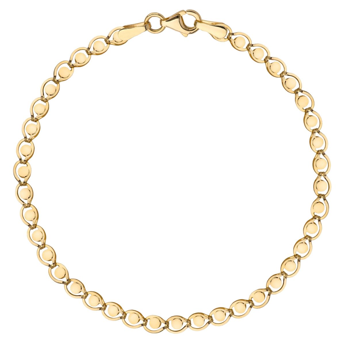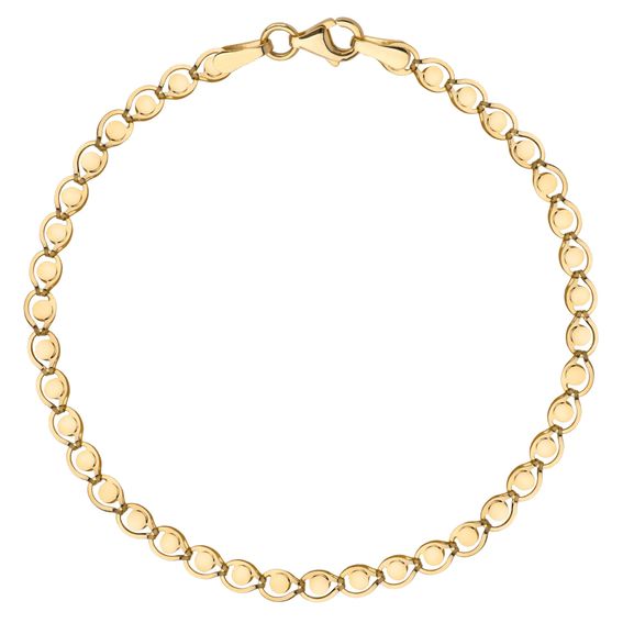 Złota bransoletka z kółeczkami, minimalistyczny wzór doskonale dopełniający stylizacje.