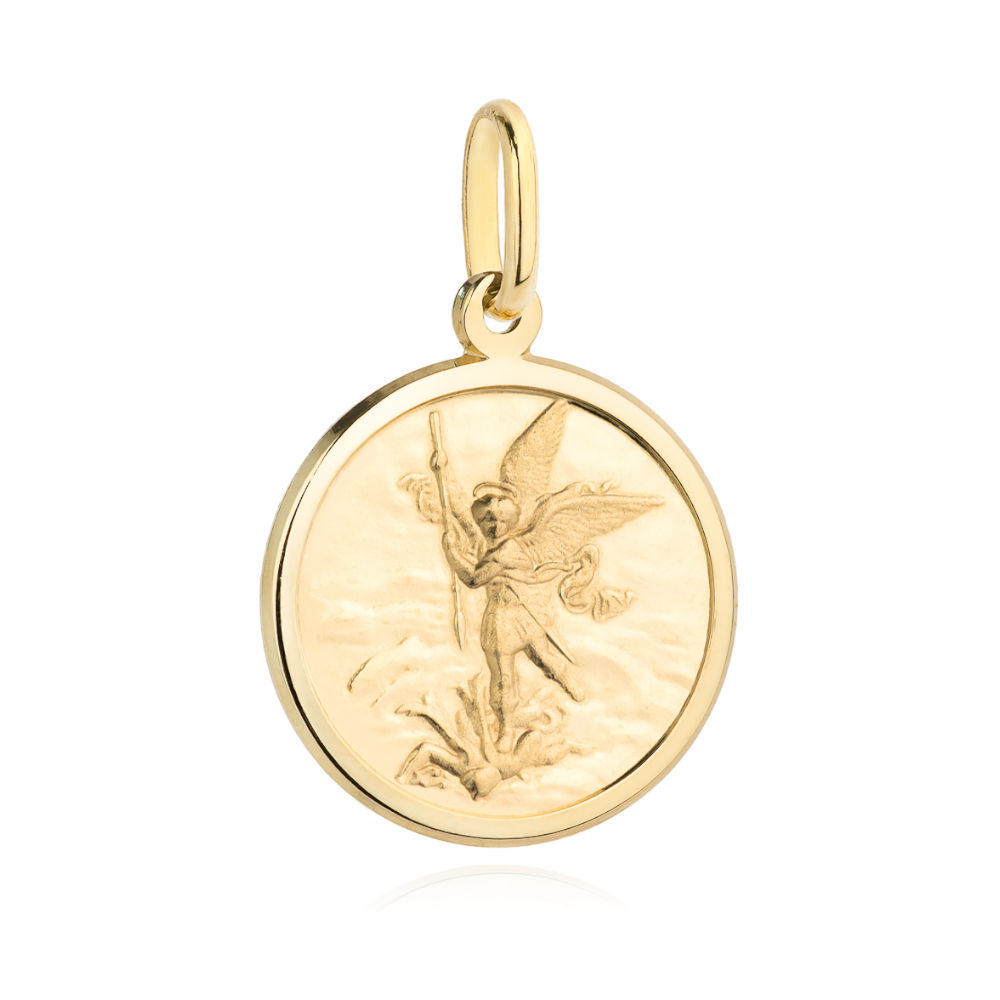 Precyzyjnie wykonany złoty medalik próby 585. Pamiątka chrztu, pierwszej komunii, bierzmowania lub ważnego jubileuszu.
