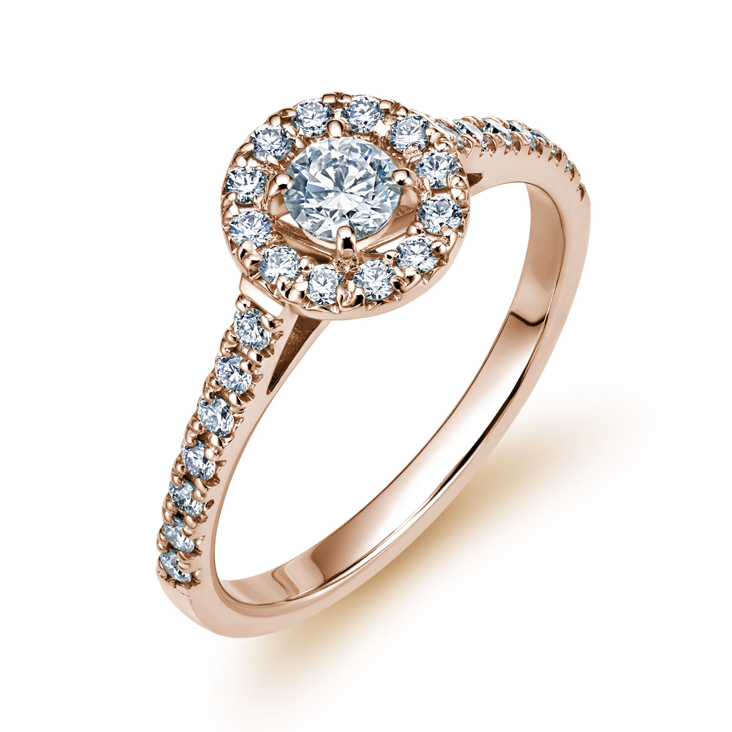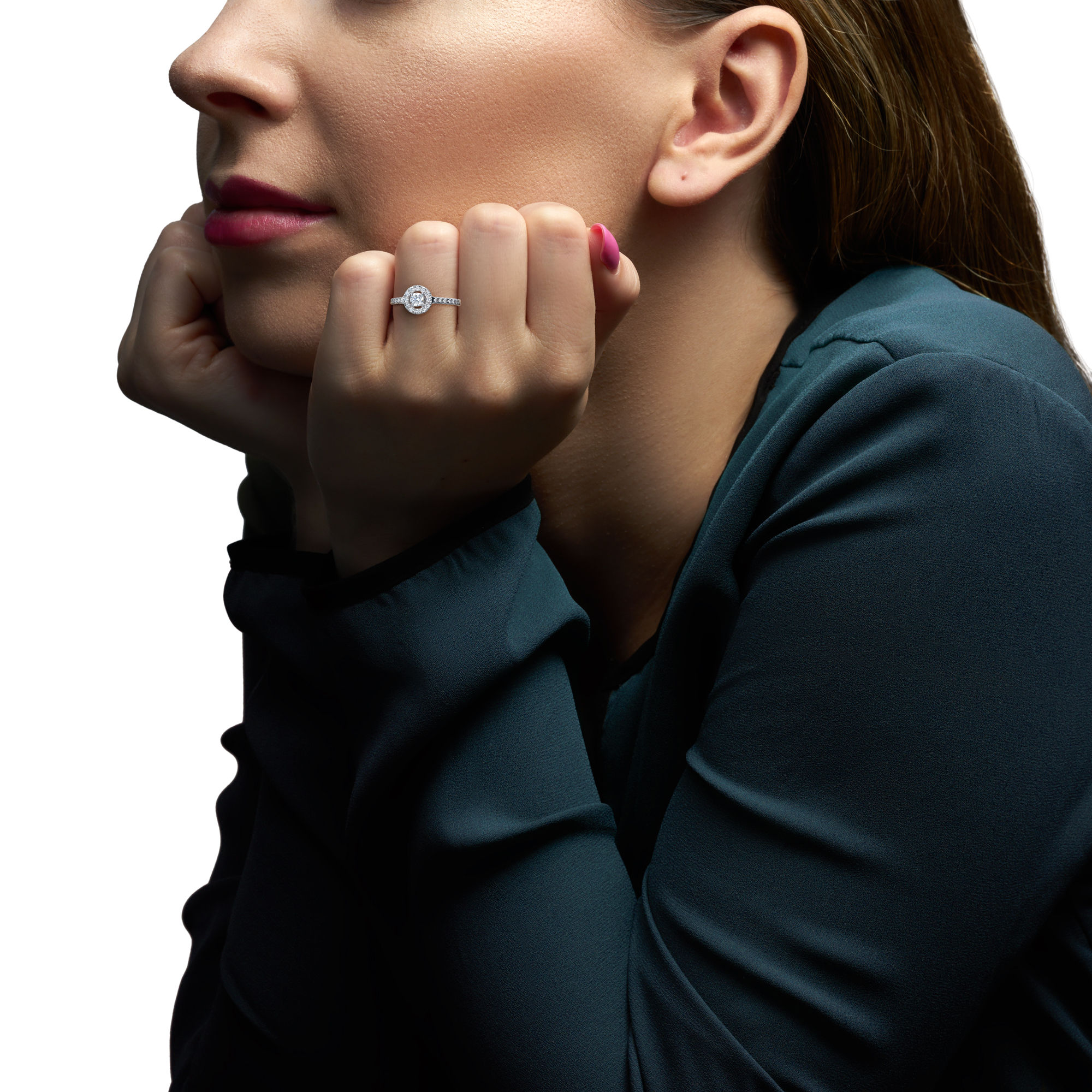 Złoty pierścionek w stylu HALO z diamentami o łącznej masie 0.37ct.